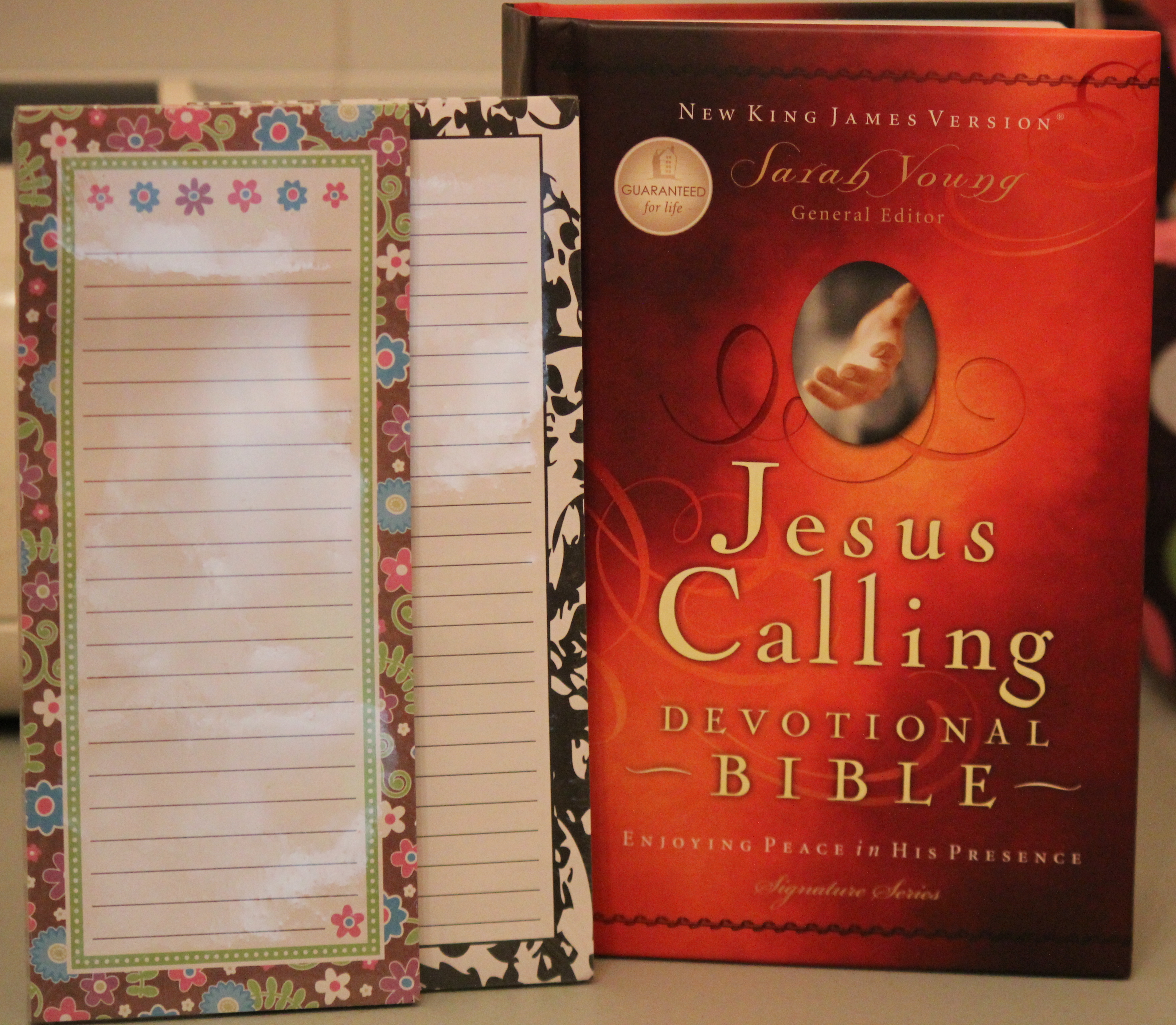 A Jesus Calling Devotional Bible (courtesy of Blue Ridge Broadcasting), two magnetic notepads, and a $10 Starbucks giftcard (not pictured).