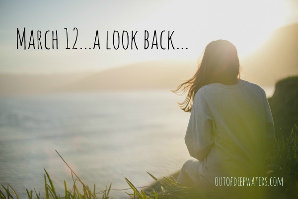 As I take this quick look back at March 12, and all that it has meant in my life, I pause and ready myself for my future of “March 12s”. There will continue to be anniversaries, reminders of what once was and what will never be again. As much as I’m able, I choose to make those days of honor rather than days of regret. The tears will still fall, but I long for those tears to, over time, be filled with joy rather than sadness.